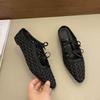 Comemore Women Weave Slippers Lace Up Middle Heel Sandals Casual Solid Woman Shoes Summer New Baotou Half Mules Shallow Slides