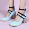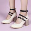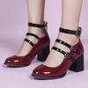 Sweet Retro Burgundy Leather Shoes Mary Jane Straps Round Head Doll Shoes Thick Heel High Heel Single Shoes Sweet Retro Style