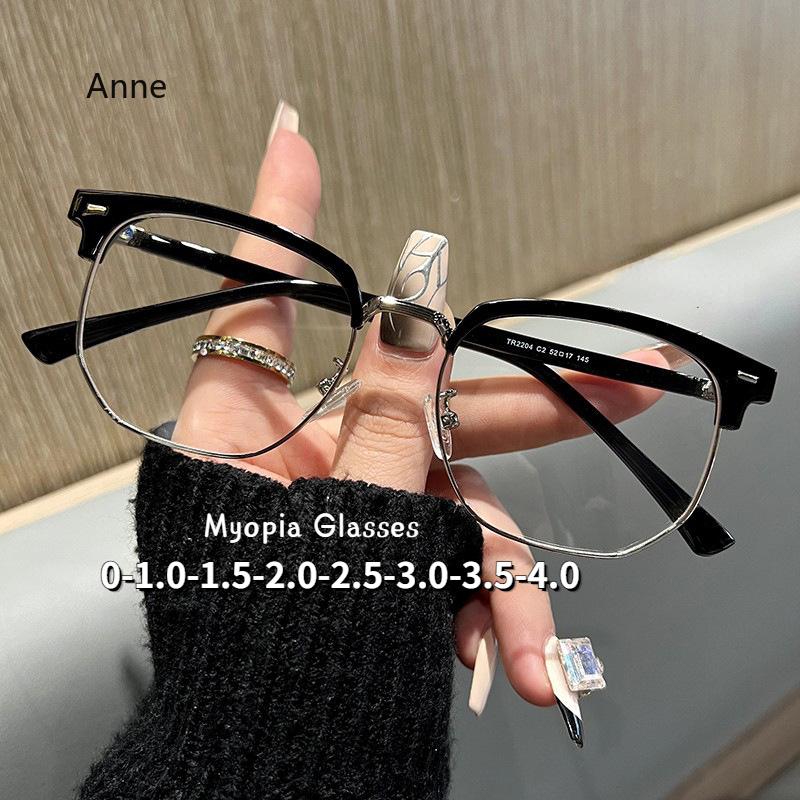 Half Frame Myopia Glasses Fashion Finished Shortsighted Eyeglasses Men Women Optical Goggles Diopter -1.0 -1.5 -2.0 -3.5 To -4.0