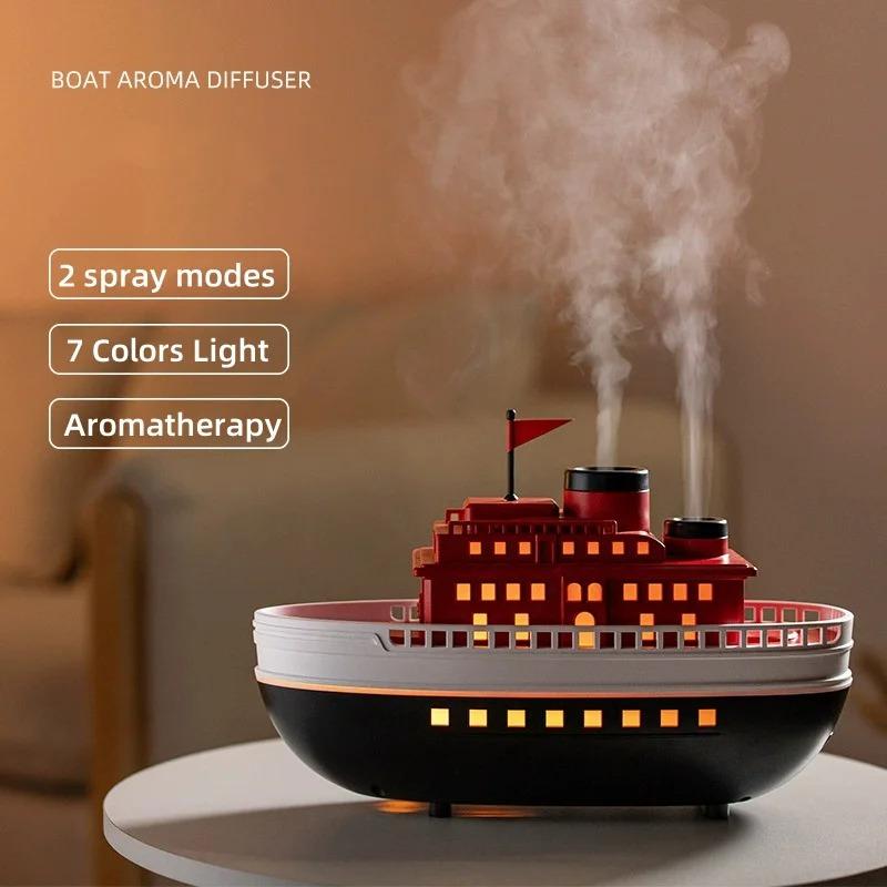 5V USB Ship Model LED Night Light Aroma Diffuser Smoke Aromatherapy Spray Cruise Ship Humidifier Ferry 7-Colors Decoration Light