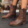Large Size Printed Knight Boots Autumn and Winter New Square Heel Medium Tube Western Cowboy Women's Boots Women's