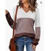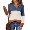 New Style Sweater Contrasting Color Solid Color V-neck Hollow Pullover for Women
