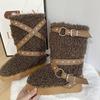 2025 Winter New Wool Boots Children Punk Lamb Platform High Heel Snow Boots Plush Long Shoes Europe and America