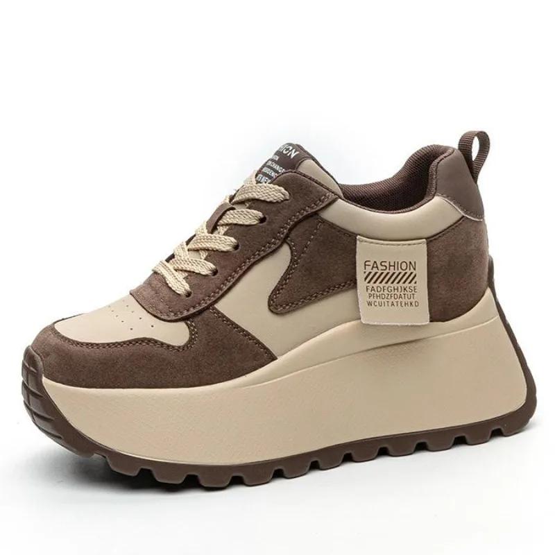 Fashion 8CM Chunky Women Sneakers Spring Autmn Retro Genuine Leather Lace-Up Ladies Sport Shoes Woman Casual Walking Platform Sneaker
