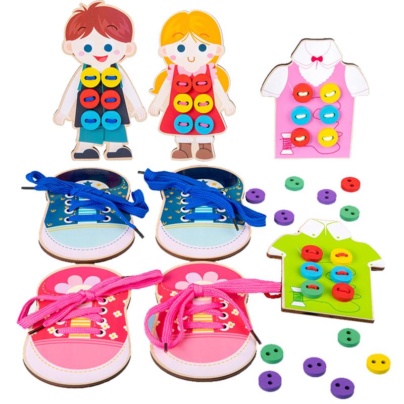 Baby Wooden Threading Board Learning Toys Montessori Stitching Button Game Educational Basic Life Skill Toys Fine Motor Training