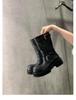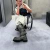Cowhide Version! Grape Ma Same Shoes Increased by 6cm~ Three-dimensional Round Head Belt Buckle Thick Sole Thick Heel Knight Boots Women