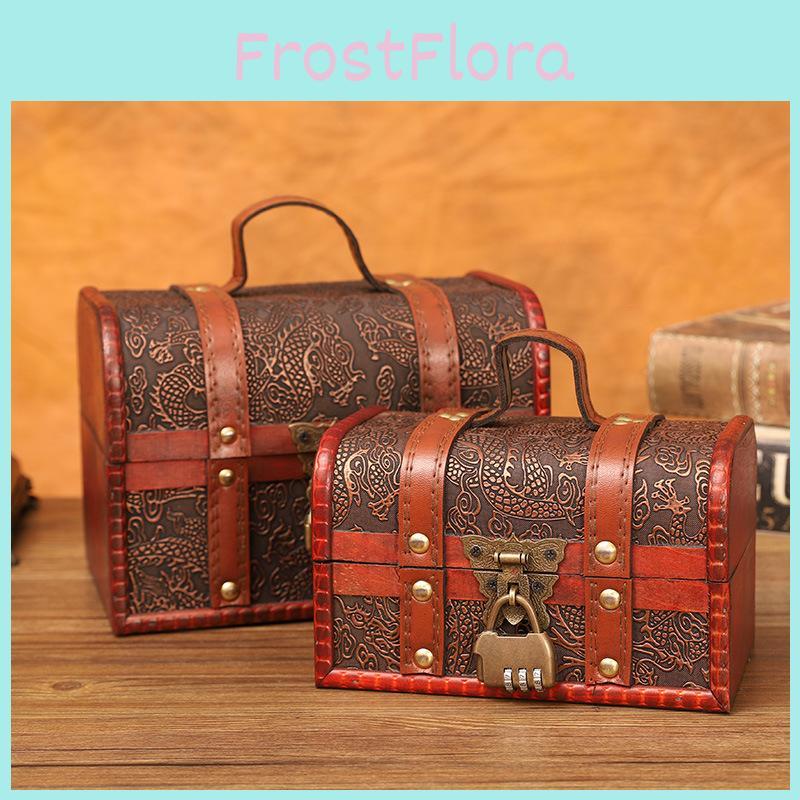 Retro Pattern Dragon Wooden Storage Box With Metal Lock For Desktop Storage