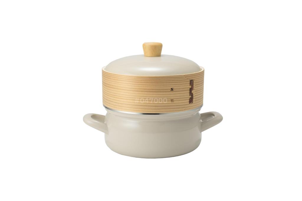 GoodPlus+ Custom-Made Enamel Pot with Steamer, 18cm (Greige, 1 Steamer Tier) GPB-SER18-GG1