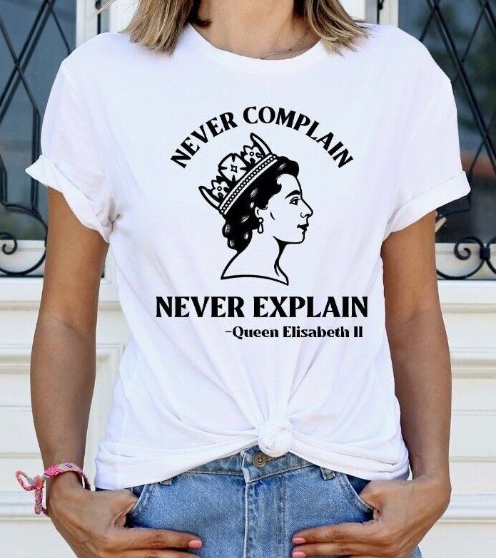 Queen Elizabeth T-shirt Quote Never Explain Never Complain Novelty T-shirt