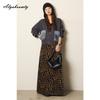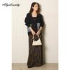 Korean Fashion Autumn Winter Women Cardigan V Neck Black Gray Apricot Knitted Outerwear Casual Loose Ladies' Denim Patchwork Stylish Coat
