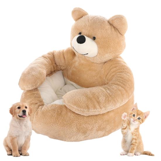 Teddy Bear Hug Comfort: Featuring an adorable teddy bear shape with arm, this pet sofa offers a warm hug-like experience, easing your pet's anxiety and fostering a feeling of warmth and companionship.