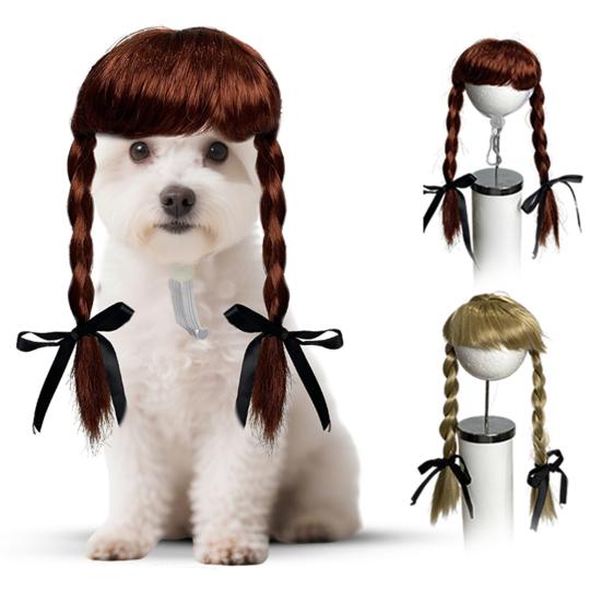 The charming braided style adds elegance to your pet's appearance, making them the life of the party at holidays, parties, or special occasions. Whether it's for a photo shoot or a family gathering, this pet wig is a must-have accessory that will bring joy and style to every moment. Elevate your pet's style with this eye-catching headpiece that is sure to turn heads wherever you go!