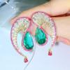 Wave Water Drop Needle Large Earrings Irregular Curved Lines Zircon Emerald Color Zirconium Tassel Earrings