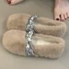 Soft-soled Loafers Women's 2025 Autumn and Winter Velvet Khaki Fluffy Shoes Wear a Pedal Fairy Mink Beanie Shoes