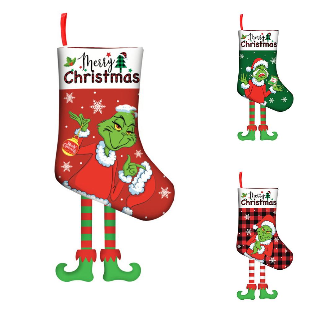 Christmas Stockings Green Creative Printing Gift Bag Fireplace Pendant Decoration