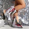 New Winter Fur Onepiece Raccoon Fur Female Snow Boots Fur Shoes Outdoor Mid Leg Boots