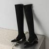 Autumn and Winter Women's Elastic Boots Comfortable Rubber Sole Middle Heel Pointed Large Size Women's Boots Korean Edition Black Over-the-Knee Boots