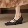 New Four-season Wear Women's Sheepskin Low-top Shoes Leather Wedge Heel Buckle Lazy Shoes Women's Casual Round Head Women's Single Shoes