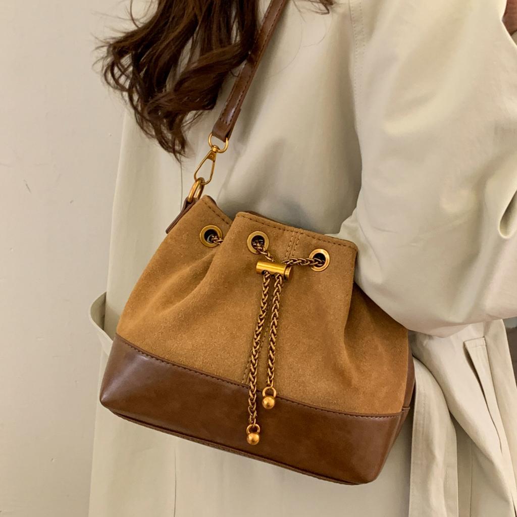 Niche Design Portable Small Bag Women's 2025 Autumn New Contrasting Color Foreign Style Chain Messenger Bag Commuter Bucket Bag