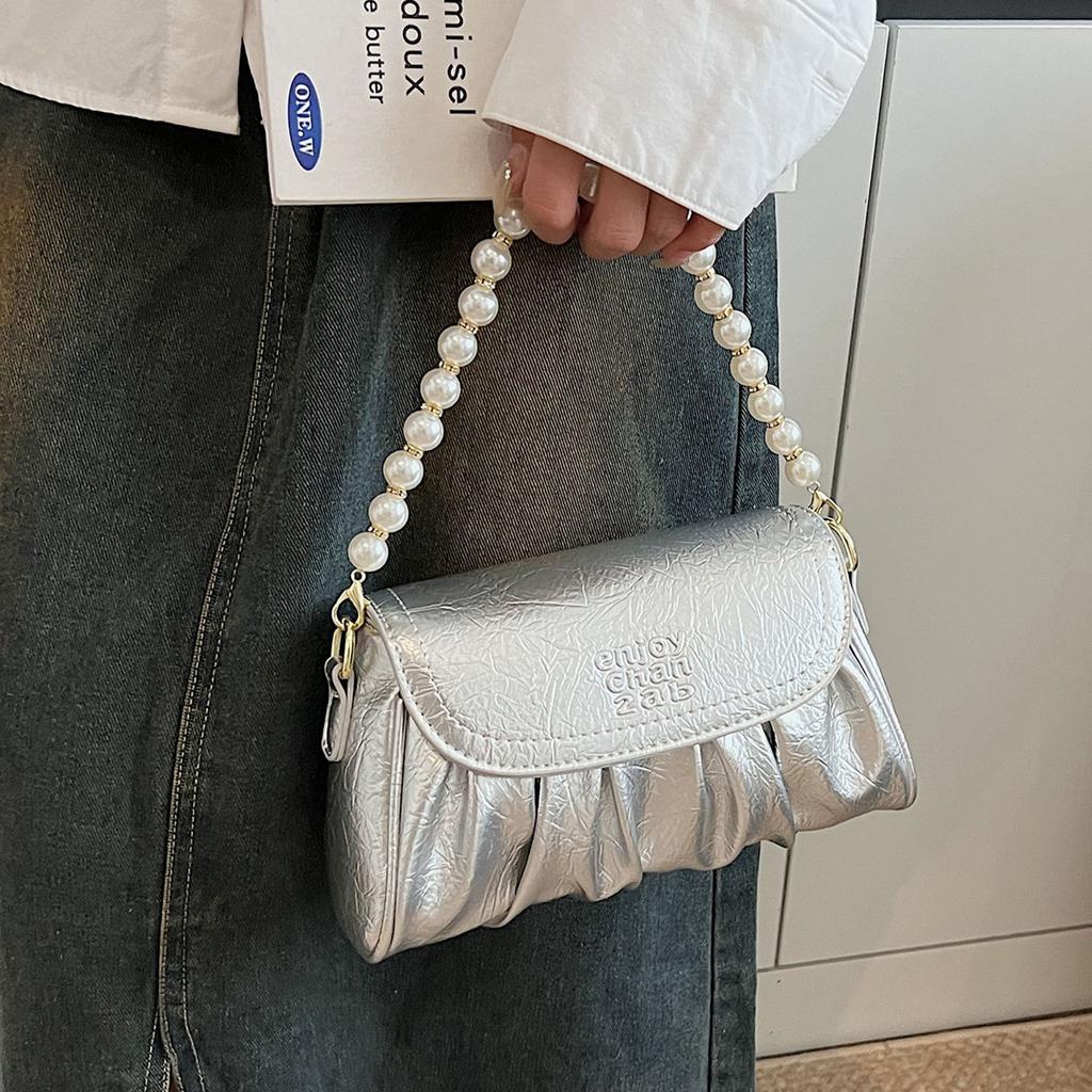 Niche Design Popular Bag Women's 2025 New Fashion Pearl Portable Shoulder Underarm Bag Pleated Chain Messenger Bag