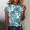 Round Neck 3D Tropical Floral Printed Casual Short Sleeved Women's T-shirts - Soft Medium Stretch Polyester Fabric Summer Relaxed Fit Clothing