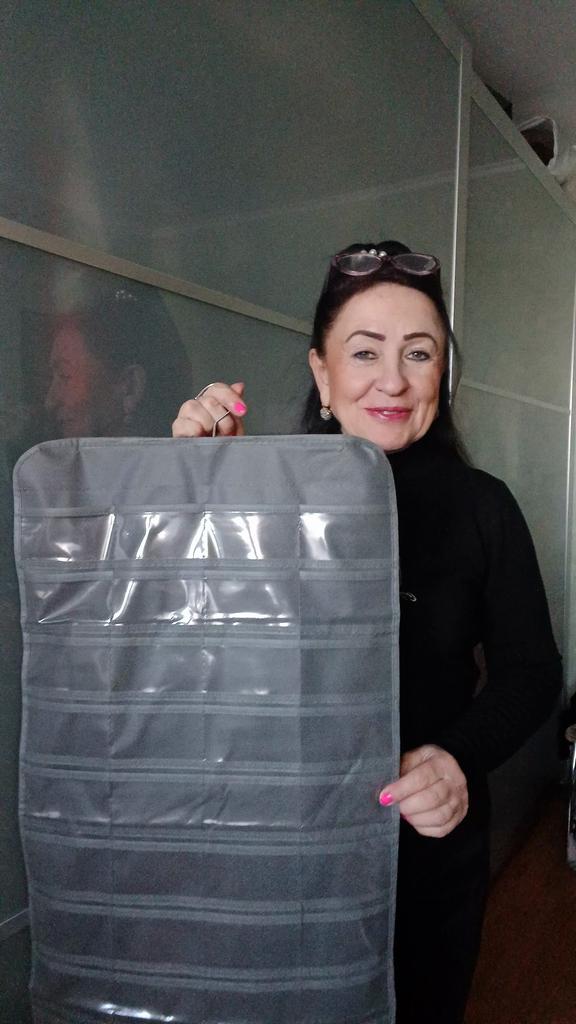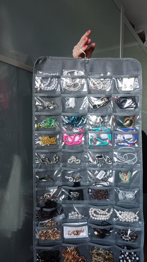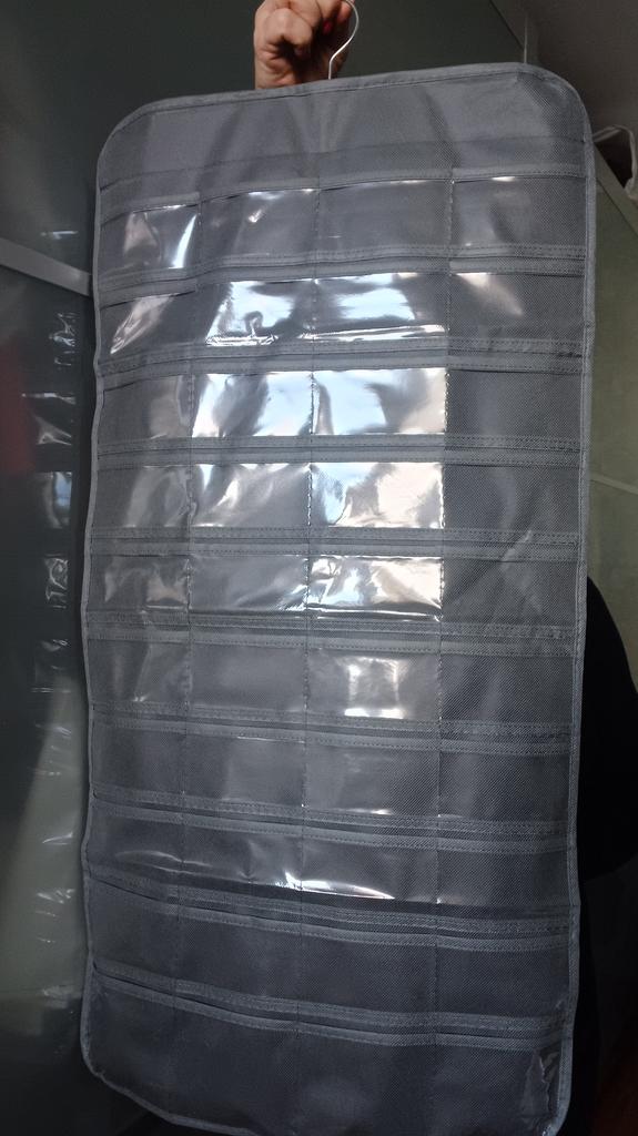 Double-Sided Multi-Grid Jewelry Hanging Storage Bag for Earrings and Accessories