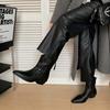 Women's Pointed Toe Retro Chunky Heel Cowboy Boots Fashion Autumn Winter Work Shoes Ruffle Comfortable Western Ankle Boots Women
