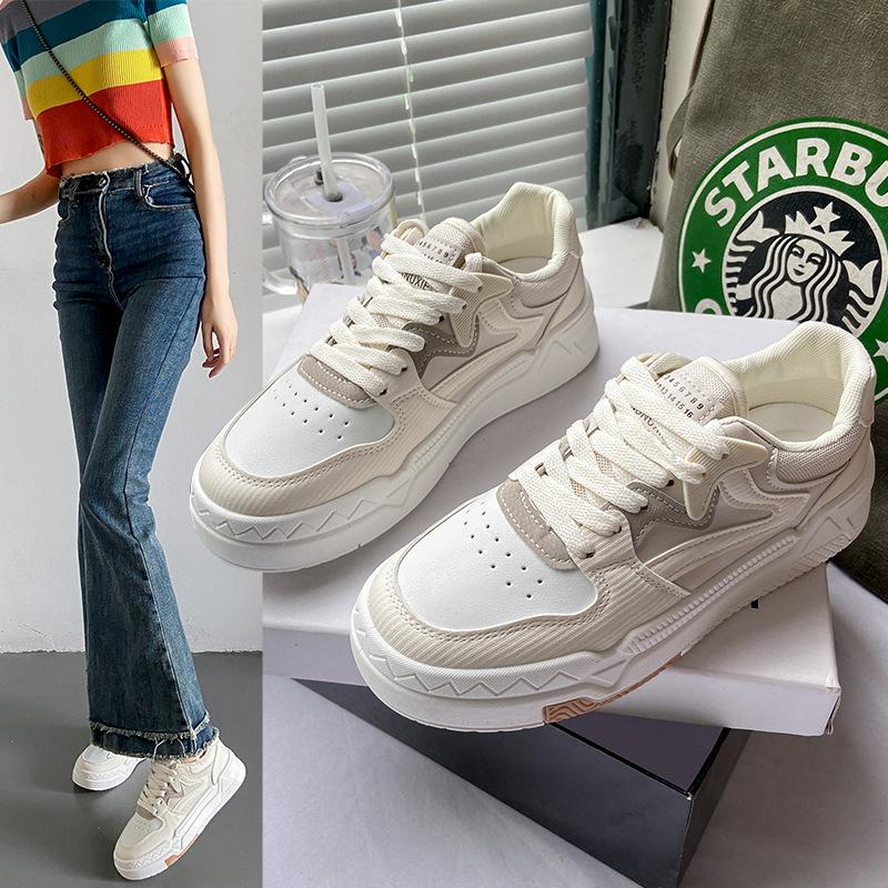Board Shoes Women's 2025 Women's Shoes Spring Korean Version Low-top Color Matching Casual Shoes Women's Lace-up Student Sports Board Shoes Women