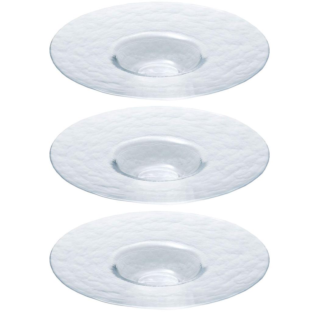 Toyo Sasaki Glass Orbit Rimmed Bowl Size Set of Made In Large Round Glass 46155 Plates, 270, 3, Japan, Plates, Dishes, Tableware,