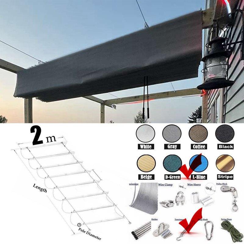 Width 2m Rainproof And HDPE Wave Telescopic Sail Garden Retractable Awning Sun Shade Screen Balconoy Shed With 15mm Steel Pipe