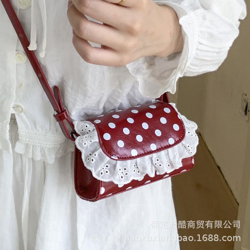 Mini Small Bag Women's 2025 New Trendy Lace Shoulder Bag Premium Polka Dot Messenger Bag Small Square Bag