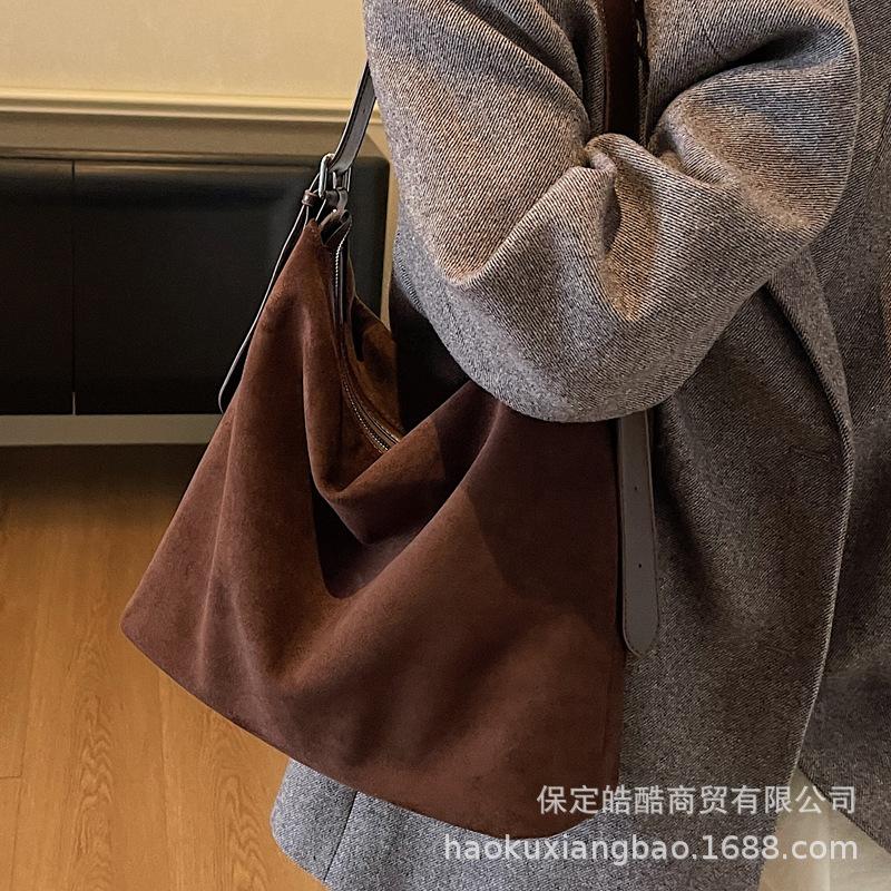 Suede Bag Women's Large Capacity 2025 New Autumn and Winter Retro Shoulder Messenger Bag Commuter Tote Bucket Bag