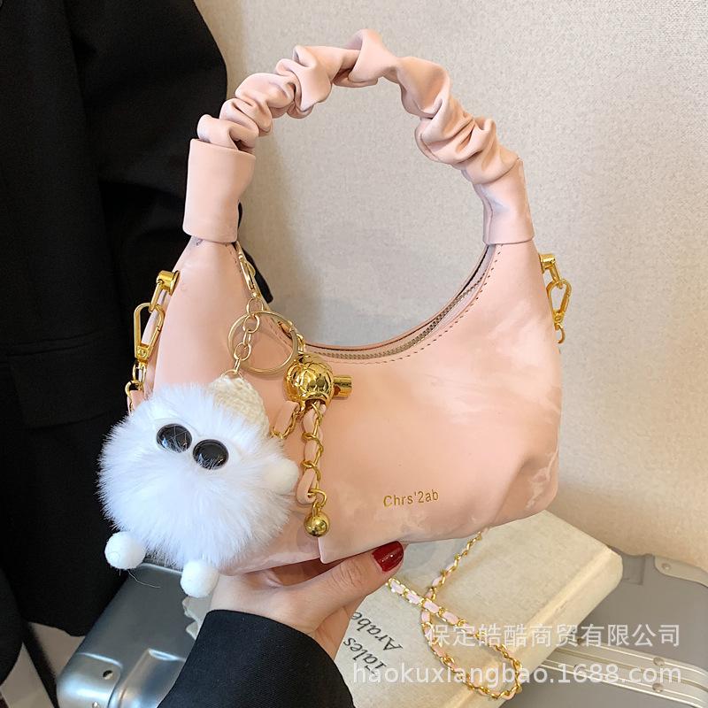 Niche Design Bag Women's Spring Summer 2025 New Fashion Chain Shoulder Messenger Bag Pleated Portable Dumpling Bag