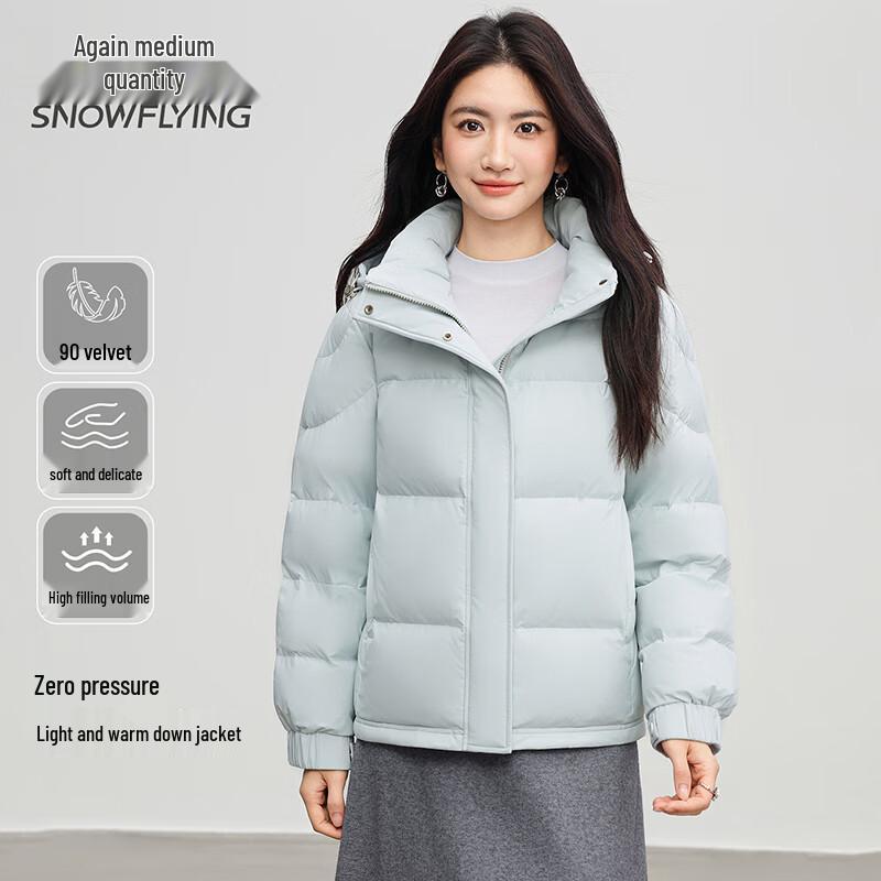 SNOWFLYING Women's Zero-Pressure Lightweight Hooded Short Down Jacket