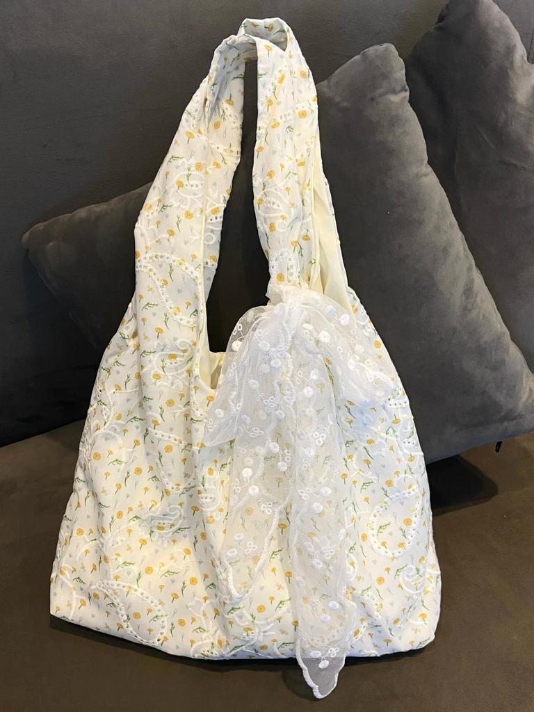 Korean Broken Flower Canvas Bag Women's 2025 New Large-capacity Shoulder Tote Bag Class Commuter Portable Shopping Bag