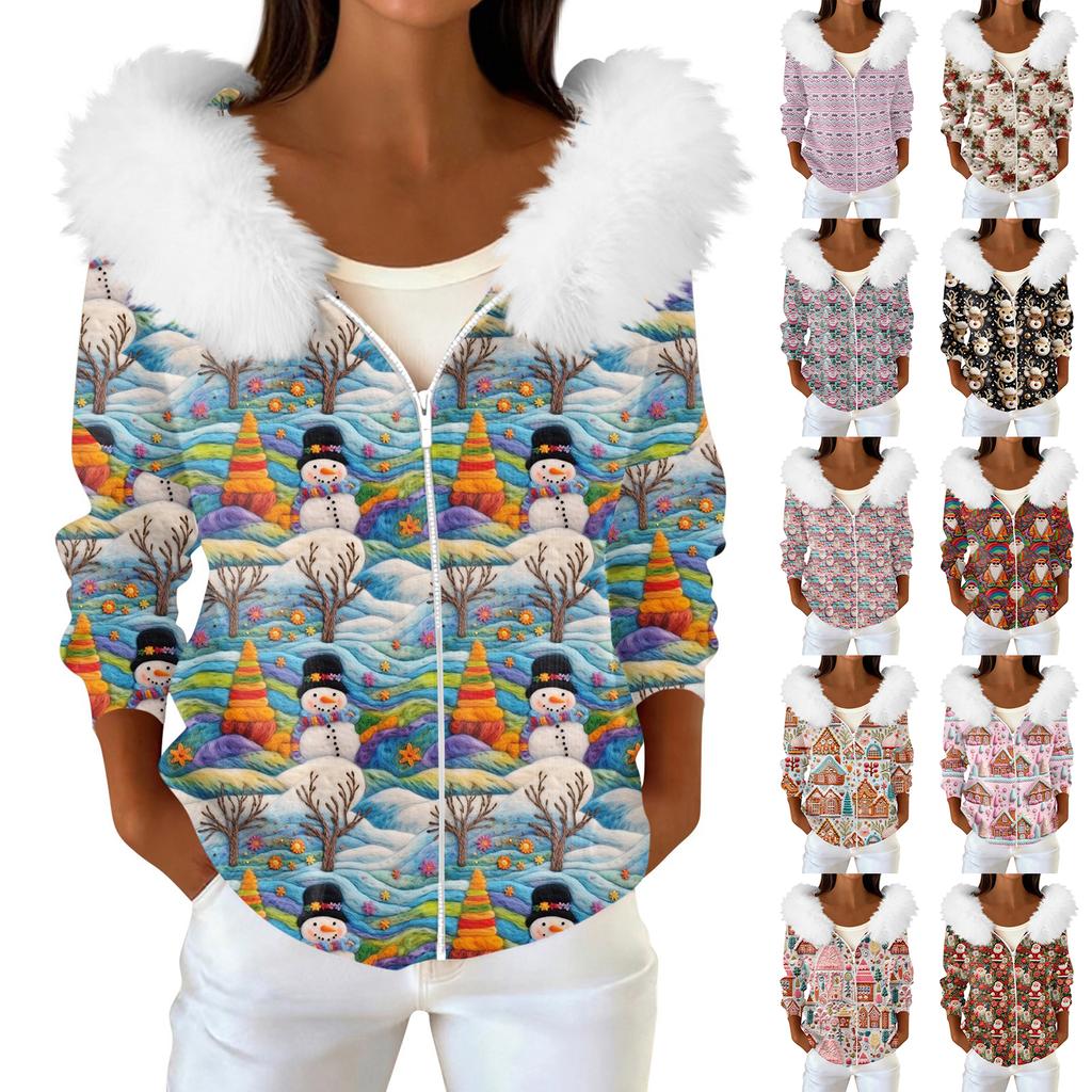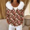 Women's Fashion Casual Sweater Zipper Print Cardigan Plush Hooded Jacket