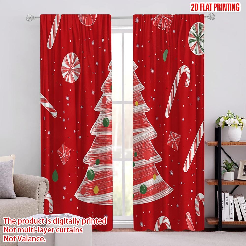 2pcs,2D Plane Printing Minimalist Curtains Christmas Tree Snowflakes Ornaments (3) Versatile Polyester (without Rod) Gifts Use