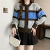 Round Neck Long Sleeve Contrast Striped Knitted Cardigan Jacket Women's Casual Top