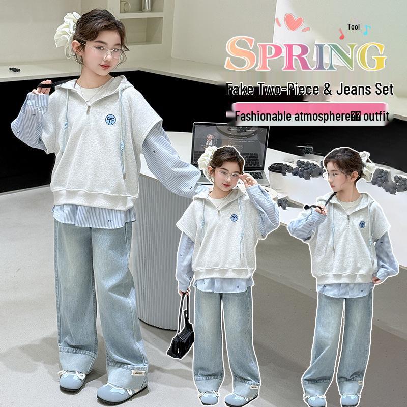 Girls' Spring & Autumn Korean-Style Two-Piece Sweatshirt and Jeans Set (2025)