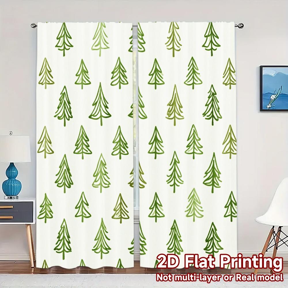 2pcs,Curtains Christmas Trees Green (2) Modern Curtains Roller Blinds 100% Polyester Curtains All Seasons Decorative for