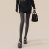 Dark Grey Fleece-Lined Polka Dot Tights with Slimming Stripes