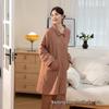 Experience ultimate comfort and warmth with this women's four-layer cotton gauze long-sleeve pajama set. Crafted from high-quality cotton material, this set offers a soft and breathable feel, ensuring a cozy night's sleep. The long sleeves and multiple layers provide enhanced insulation, making it perfect for cooler nights. Its elegant design and gentle fabric make it an excellent addition to your sleepwear collection, offering both style and practicality.