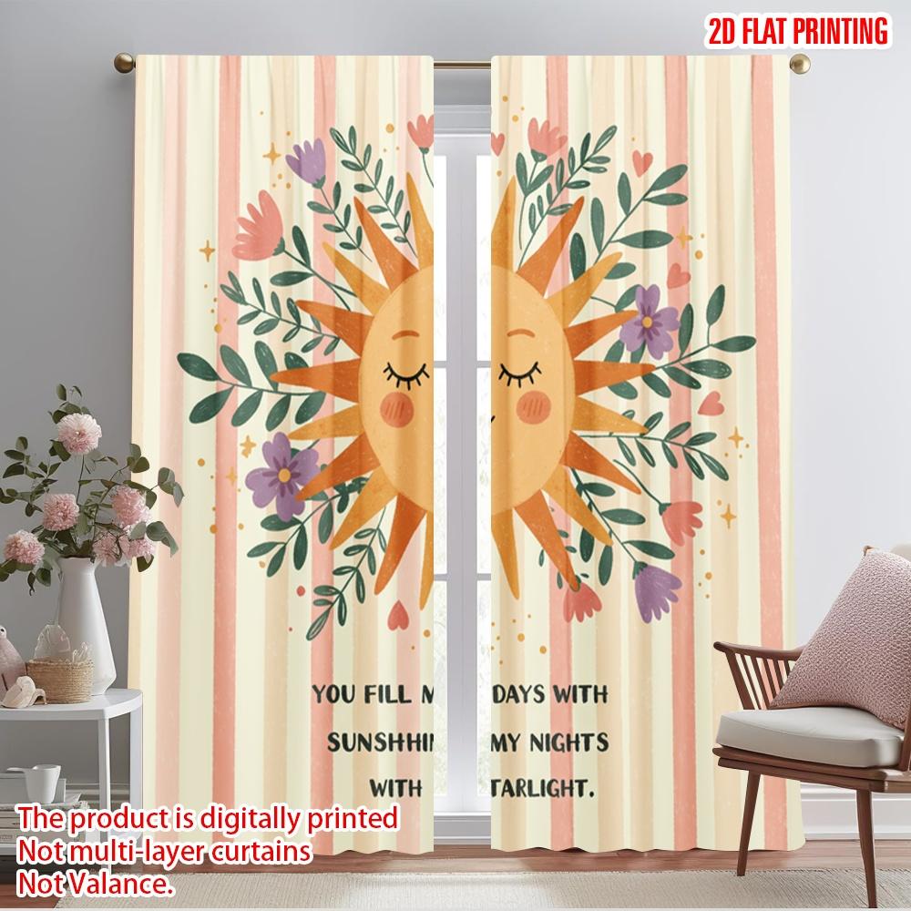 2pcs 2D Flat Printing Curtain Cute Sun Flower Polyester Without Electricity Family Party Use for General Festive and Winter