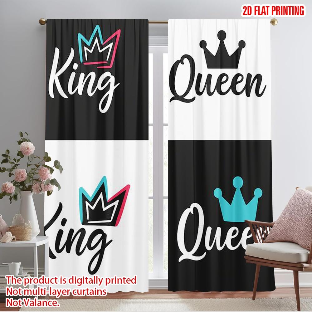 2pcs,2D Plane Printing Print Curtains Crown of King and Queen4 100% Polyester (without Rod) Festive Ldeal for Living Room and