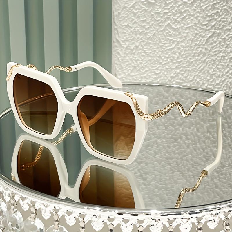 Women's Oversized Round Fashion Glasses with Snake-Shaped Metal Arms - Lightweight PC Frame, White & Golden Luxury