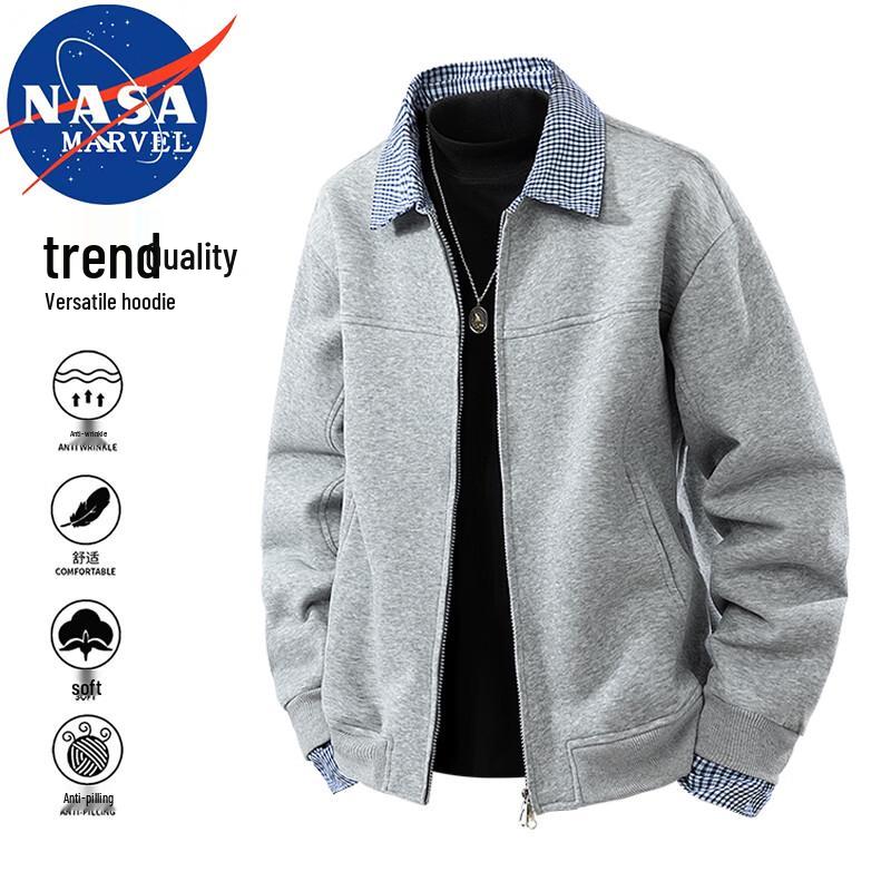 NASA MARVEL Men's Faux Two-Piece Plaid Lapel Sport Sweatshirt