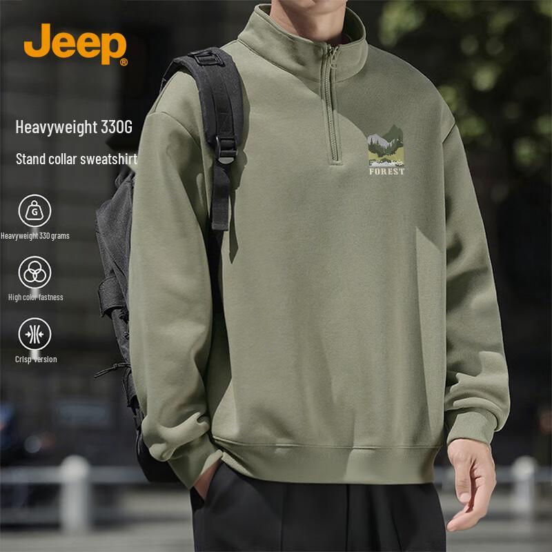 Jeep Men's Loose Casual Stand-Up Collar Half-Zip Sweatshirt