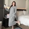 Experience ultimate comfort and style with these long-sleeved loose nightdress pajamas designed for the cooler autumn and winter months. Crafted with luxurious cashmere featuring elegant yarn-dyed stripes, these pajamas ensure a snug and warm fit. Made from high-quality polyester material, they offer durability and a soft touch, making them the perfect addition to your cozy nightwear collection.