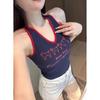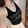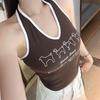 Women's American Spicy Letter Print Halter Tank Top with Chest Pad - Slimming & Flattering