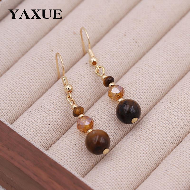 Handmade Chinese Tiger Eye Stone Tassel Earrings - Retro Light Luxury Autumn/Winter Jewelry